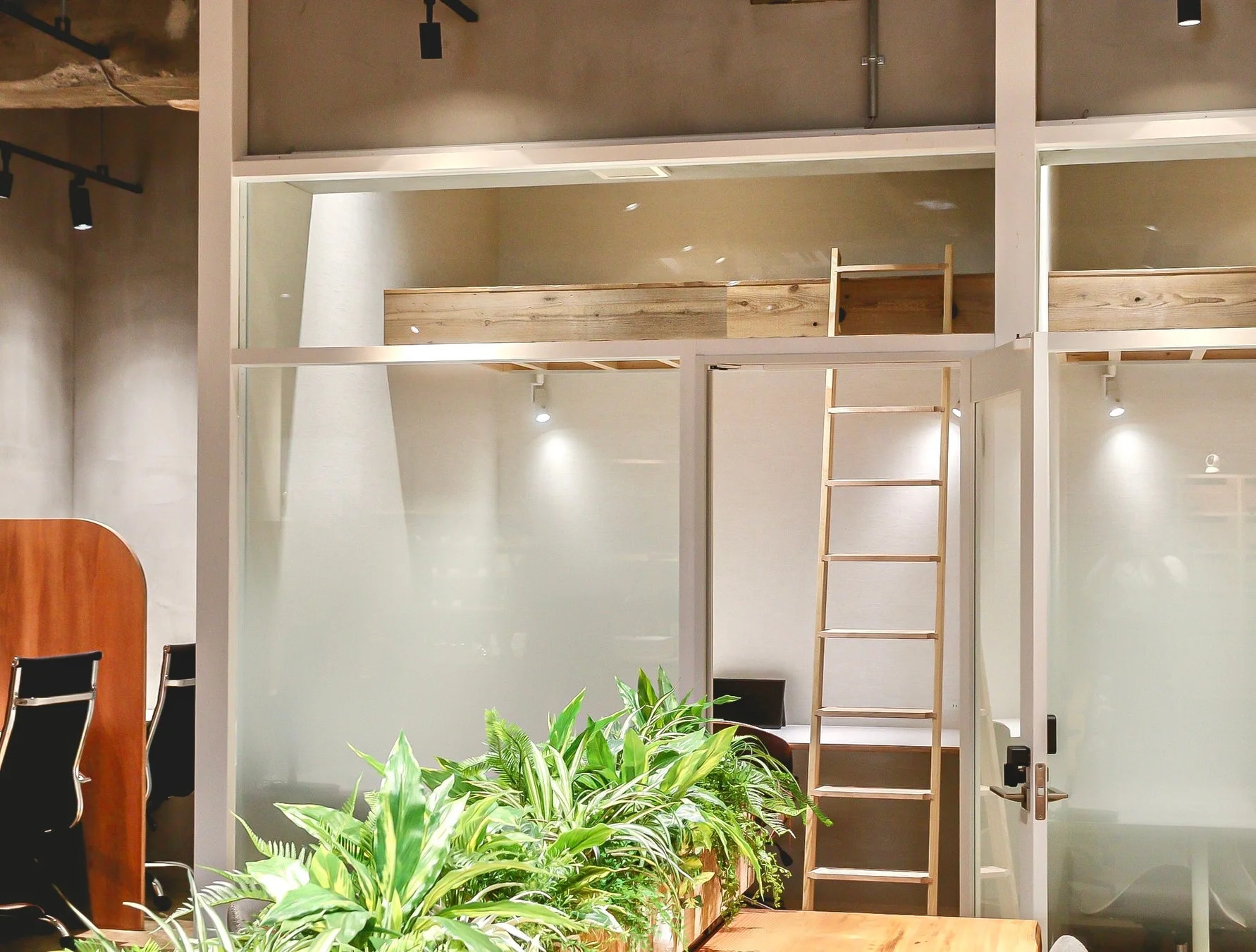 全ての個室に約3畳分の広大なロフトを完備。荷物が増えがちなビジネスにおいて、2Kマンションの1部屋を物置にしていた非効率を解消。執務エリアはすっきりと保たれ、集中力を最大限に高めることができます。