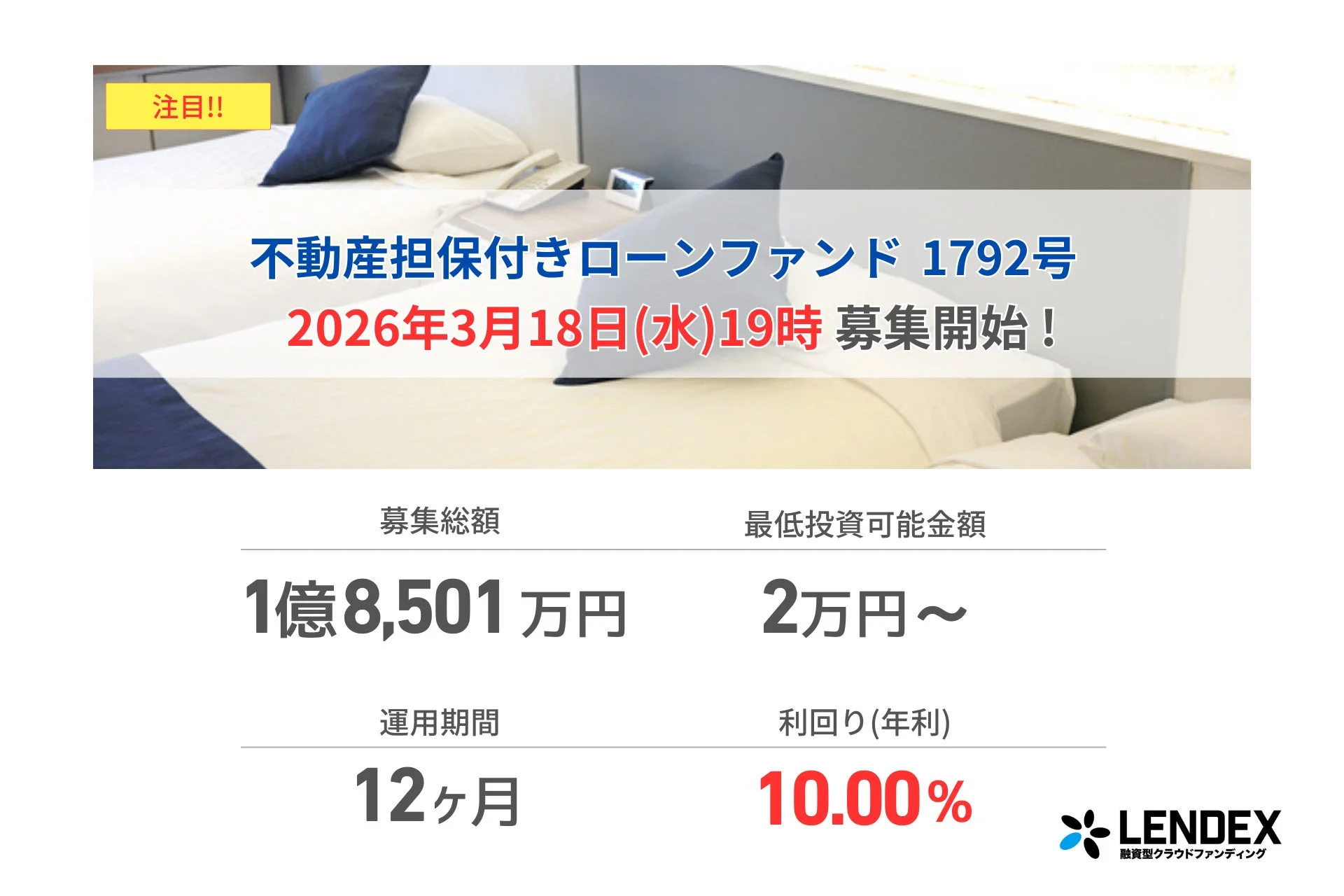 今回募集が開始される「不動産担保付きローンファンド1792号」の主な特徴は以下の通りです。