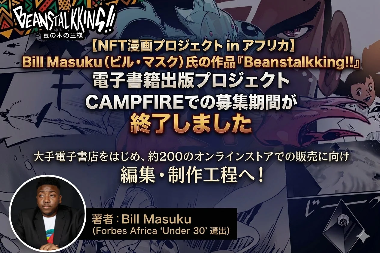 【アフリカ発NFT漫画】ビル・マスク氏『Beanstalkking!!』電書出版が決定!CAMPFIRE目標達成で期待高まる!