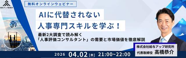Welcome! You are invited to join a webinar: AIに代替されない人事専門スキルを学ぶ! 最新2大調査で読み解く「人事評価コンサルタント」の需要と市場価値を徹底解説. After registering, you will receive a confirmation email about joining the webinar.【ウェビナー概要】「将来が不安なのに、何から動けばいいかわからない」「自分のスキルや経験を、もっとお金に変えられないか」——そんなことを考えたことはありませんか?2026年、HR領域の専門スキルを持つ人材への需要が急速に高まっています。評価...