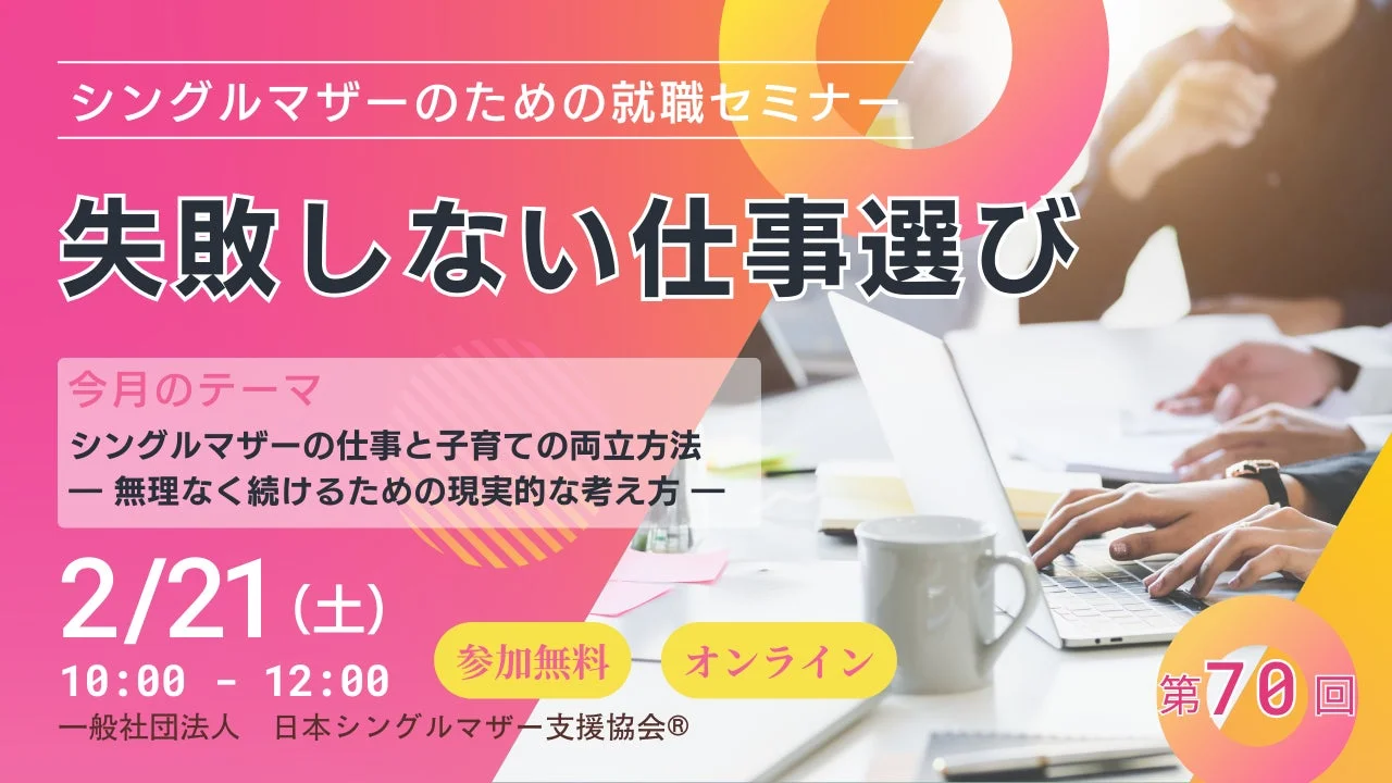 シングルマザーの自立を強力に応援!「失敗しない仕事選び」セミナーが大幅リニューアル、成功への道筋を毎月お届け!
