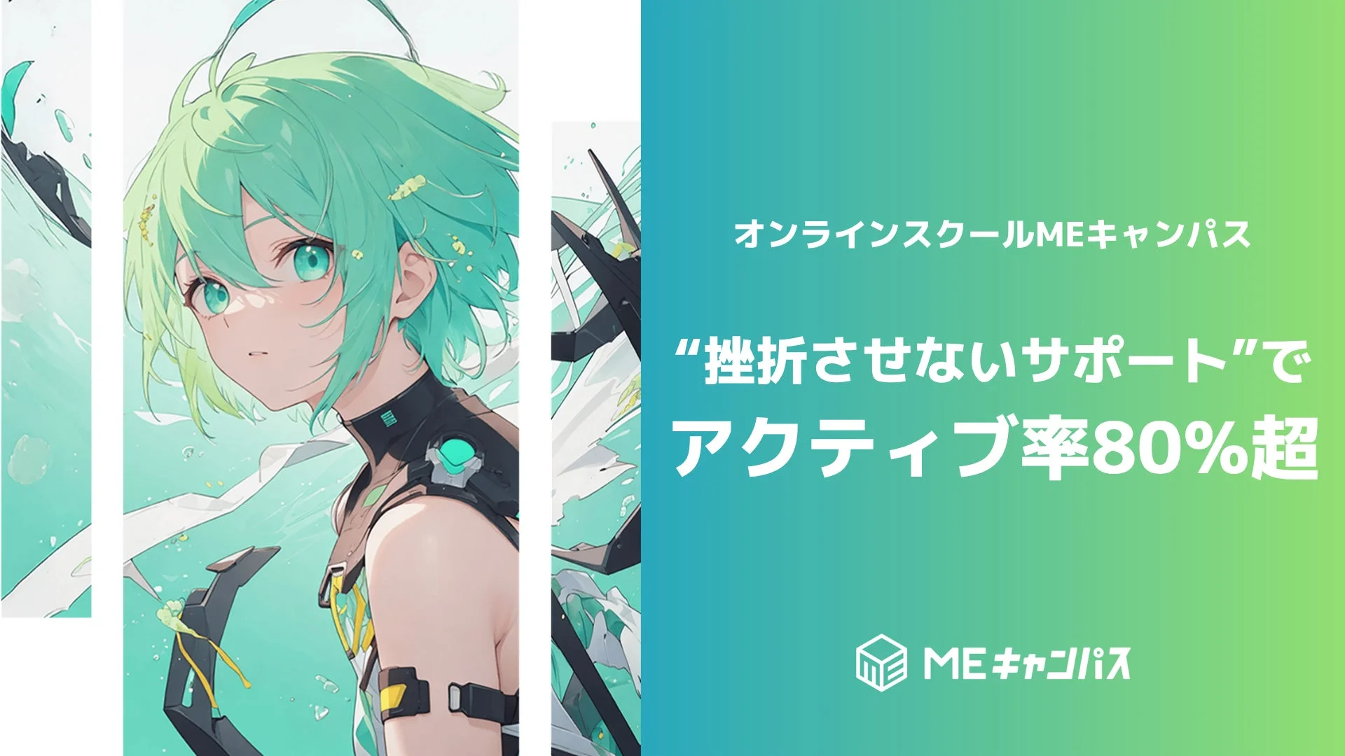 MEキャンパスは、アウトプット中心の学習と全方位型のサポートを特徴とするオンライン学習プラットフォームです。デジタル技術の急速な発展により注目されるリスキリングの需要に応え、クリエイター職への就業を目指す学生も多数在籍しています。専門コーチやAIアシスタントからのアドバイス、学生間の交流機会、企業連携プロジェクトへの参加など、充実したサポート体制が学習を後押しします。