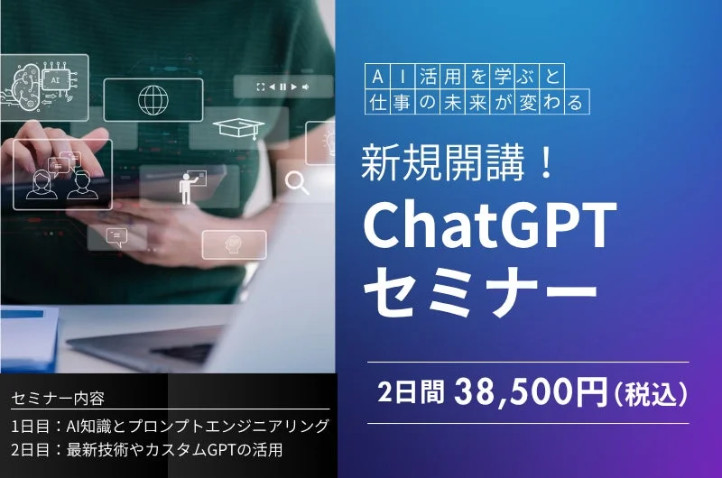 AIの知識がない方でも安心して学べるこのセミナーでは、ChatGPTの基礎から高度なプロンプト設計、カスタムGPTでのアプリ作成、さらには業務自動化まで、実務で役立つスキルを体系的に習得できます。生成AIの普及により、文章作成や企画立案、データ整理など、多くの業務が効率化できる時代。このチャンスを逃す手はありません!