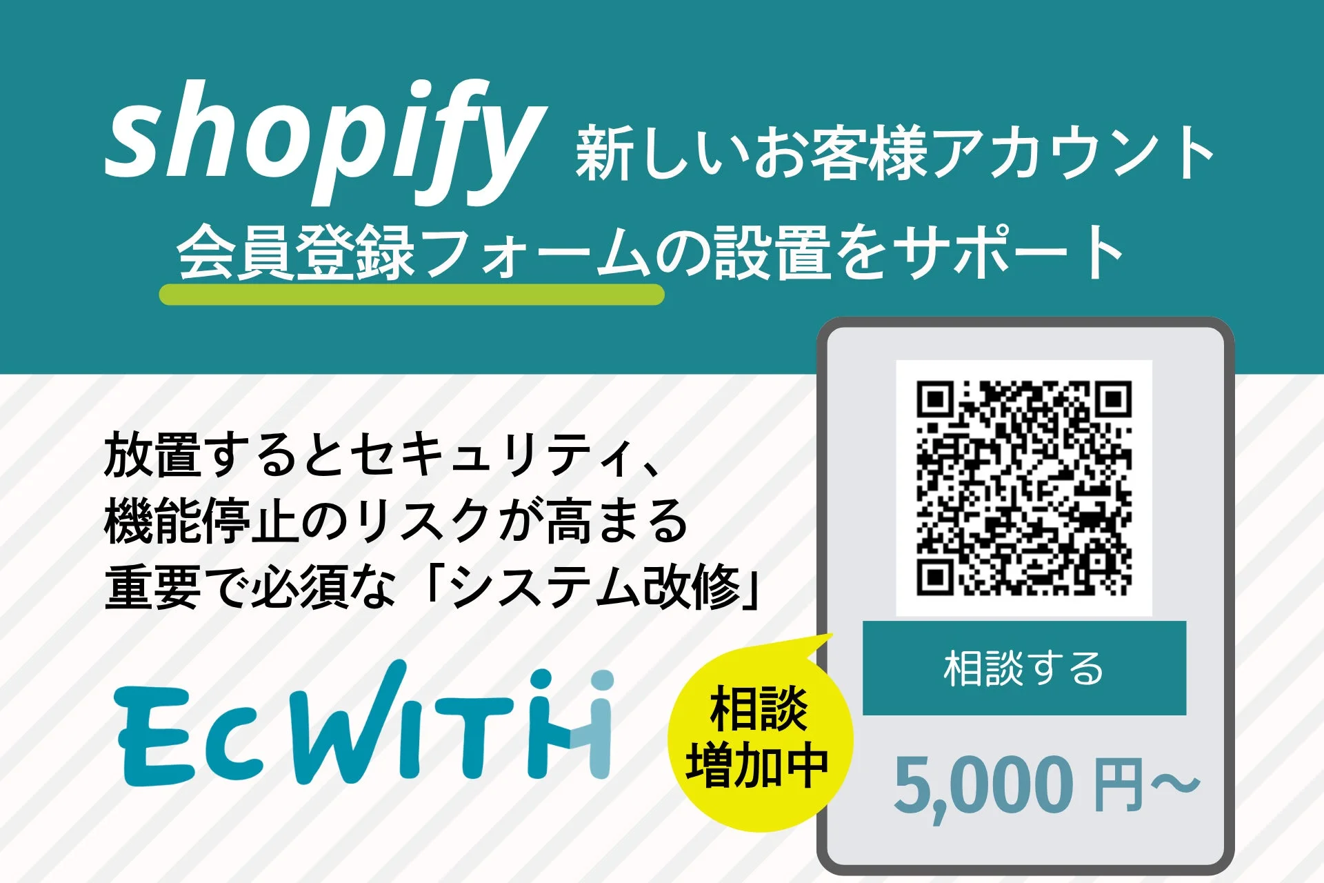 EC WITHでは、Shopifyの仕様変更に対応できる専門のEC支援会社へ相談・依頼が可能です。特に注目なのは、プラチナ認定の支援者が販売を開始した「Shopify 新規顧客アカウント 会員登録フォーム設置サービス」です。