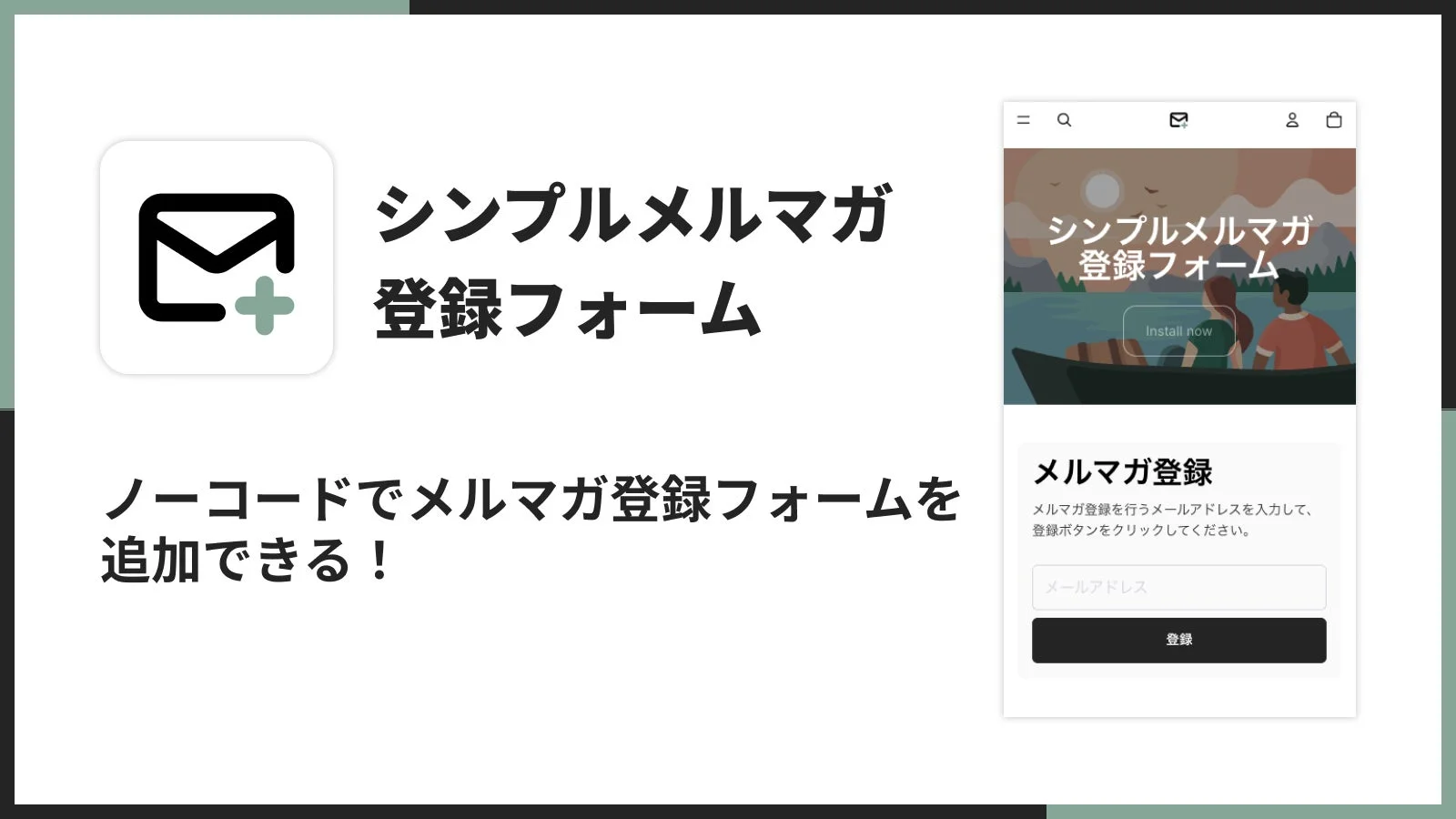 「シンプルメルマガ登録フォーム|メールマガジン購読設定」|アプリストア: https://apps.shopify.com/sa-099-ur-mailsignup?locale=ja